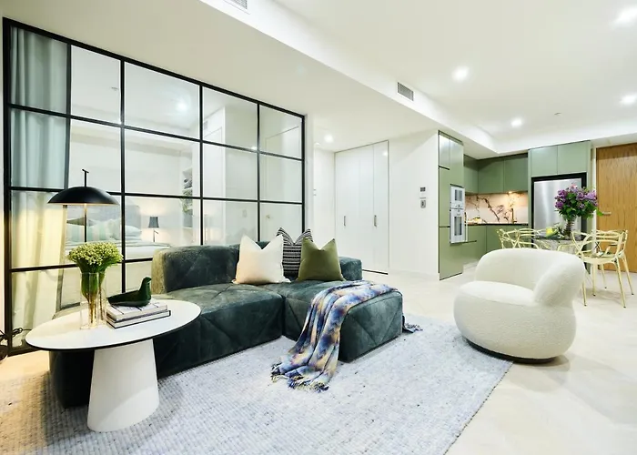 1-slaapkamer Luxury 1 Bed Apartment For Long Term Stay ligt in de St Kilda Road wijk van Melbourne en biedt luxe aanbiedingen zoals een stoomcabine en een overdekt zwembad voor een aangenamer verblijf. Het 62 m^2 grote appartement is op ongeveer 25 minuten lopen van het Olympic Park Stadium en de luchthaven Essendon Fields is op 23 minuten rijden.